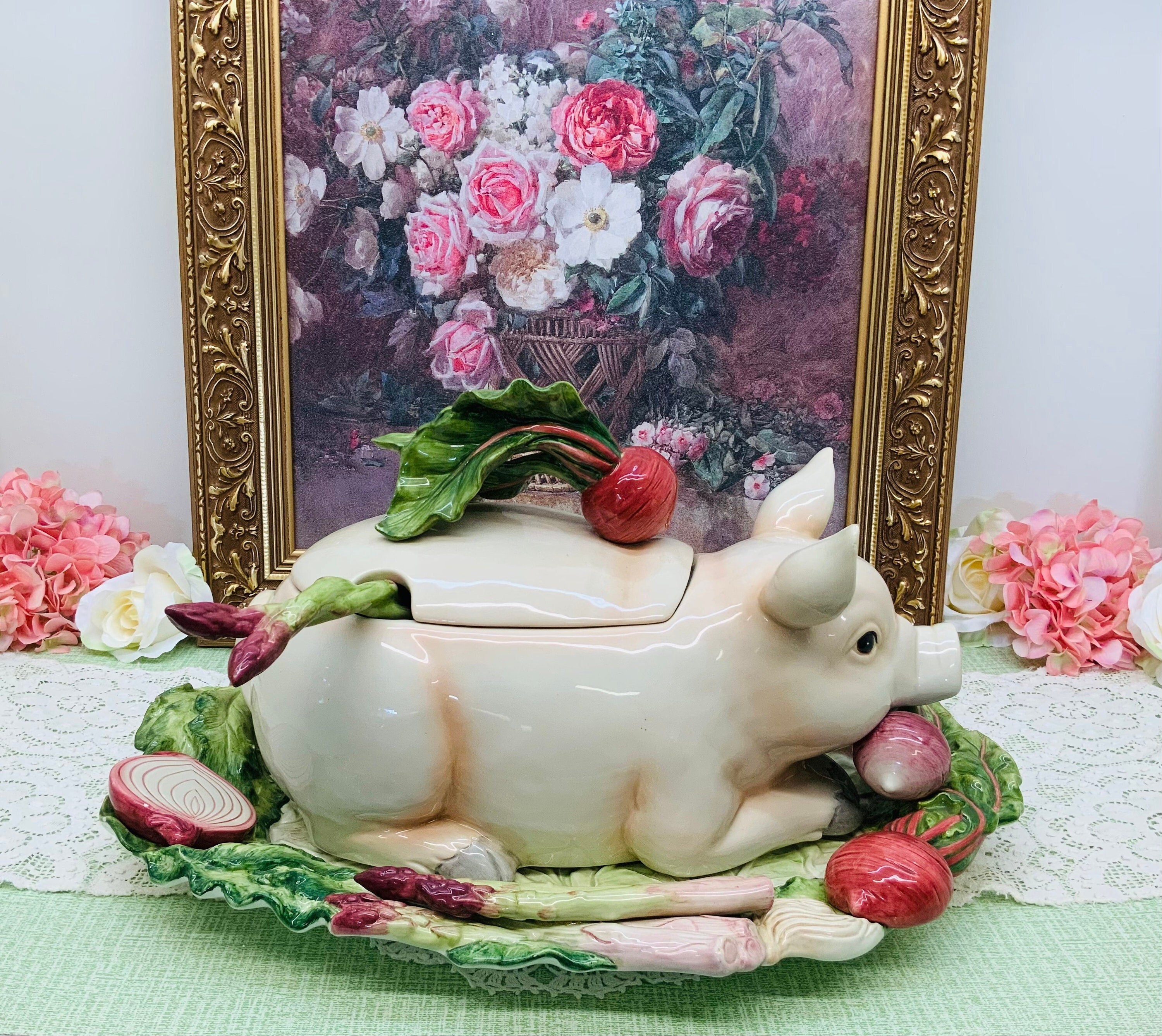 Fitz Floyd French Market Pig Soup Tureen Platter W Asparagus Ladle Mint 1928638378